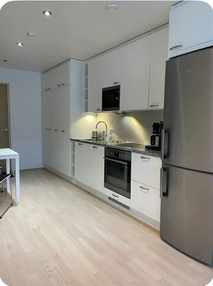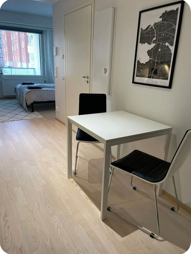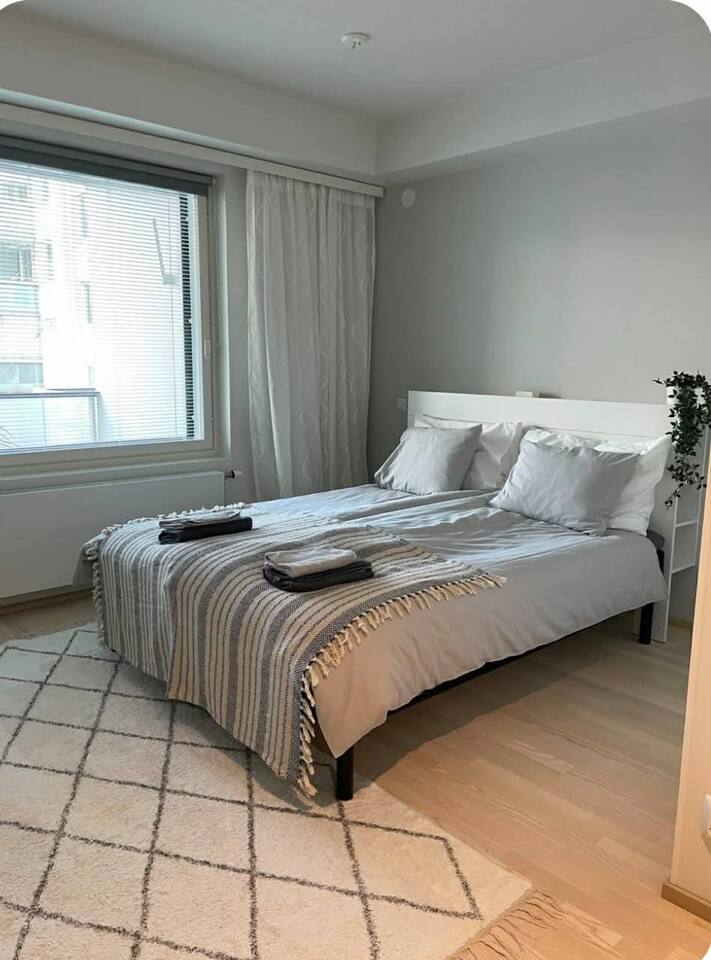 🌿 Peaceful location right next to the city center – the apartment faces the inner courtyard, so you can enjoy quiet surroundings just steps from downtown. 🛏 Comfortable stay for 1–4 guests: a quality double bed and a bright, uncluttered space support a relaxing stay. Two additional mattresses are available on request. 🍳 Well-equipped kitchen with everything you need for cooking, including a coffee maker. ❄️ Air conditioning for warm summer days, keeping the apartment приятно cool and comfortable. 🧺 Washing machine available – especially convenient for longer stays. 📶 Fast Wi-Fi – ideal also for remote work. Perfect for business trips, weekend getaways, or longer stays. Amuri is a charming and highly pleasant area, with Hämeenpuisto right next door. Cafés, restaurants, and all city center services are within easy walking distance. 🚋 Easy transport connections: tram and bus stops nearby make it effortless to get around Tampere. Within walking distance: - Hämeenpuisto 50 m - Finlayson area 500 m - Särkänniemi 700 m - Keskustori 900 m - Pyynikki outdoor area 1 km - Ratina 1.4 km - Train station 1.5 km ✨ Modern Stay Amuri is a calm and convenient base for your stay in Tampere.
